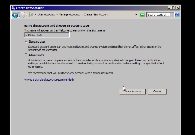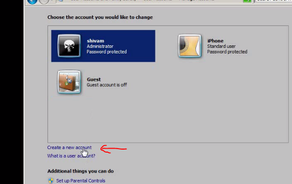 - Go to start -> click on user icon -> click on manage another account -> create a new account